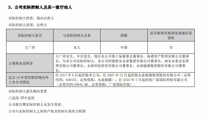 王广西是永泰能源、海德股份两家A股上市公司的实际控制人,同时也是港股上市公司广泰国际控股的最终控股方。